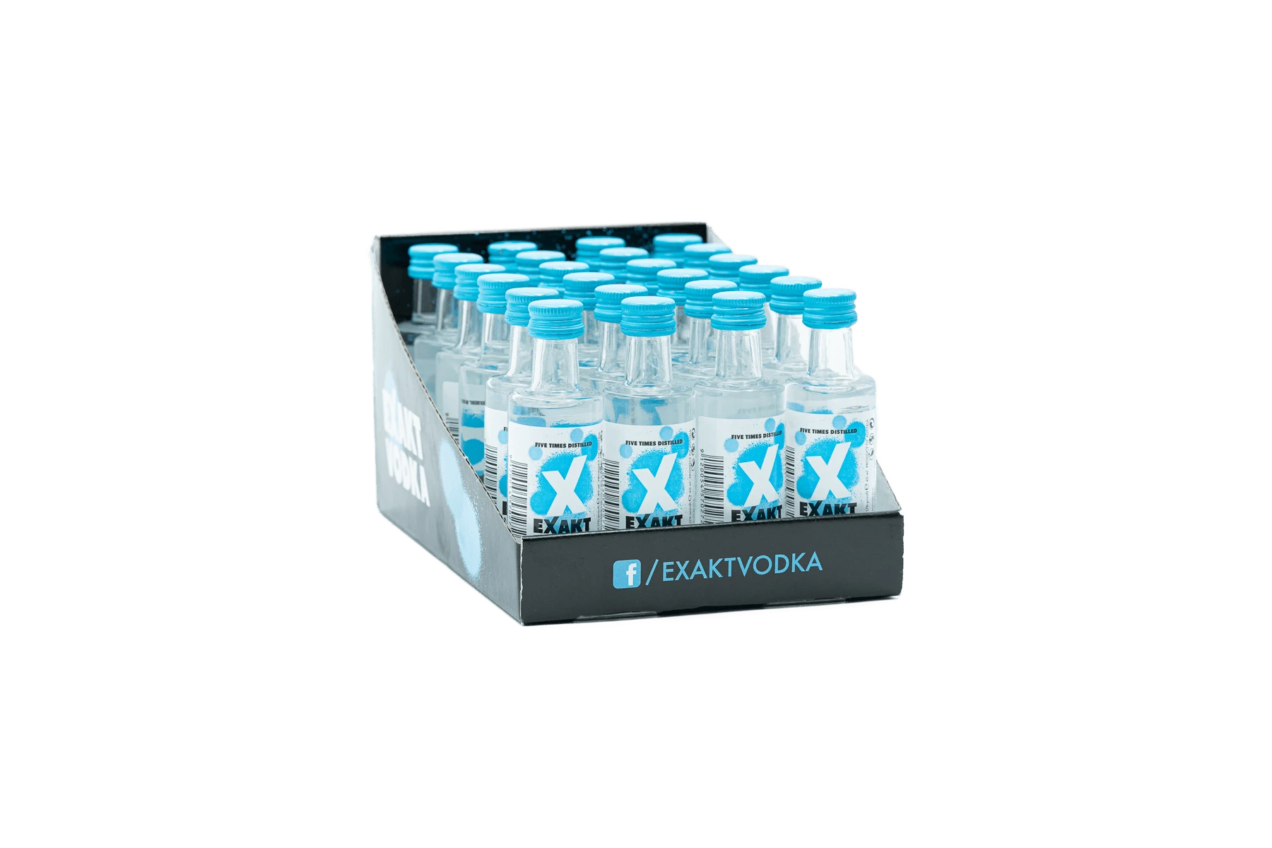 Kompakt, flexibel, professionell: Die EXAKT 4 cl Minis sind die schnelle Lösung für Bars, Events und Tastings. Weicher, neutraler Premium-Vodka mit klarer Linie – pur, auf Eis oder als exakte Basis für Highballs und Klassiker.