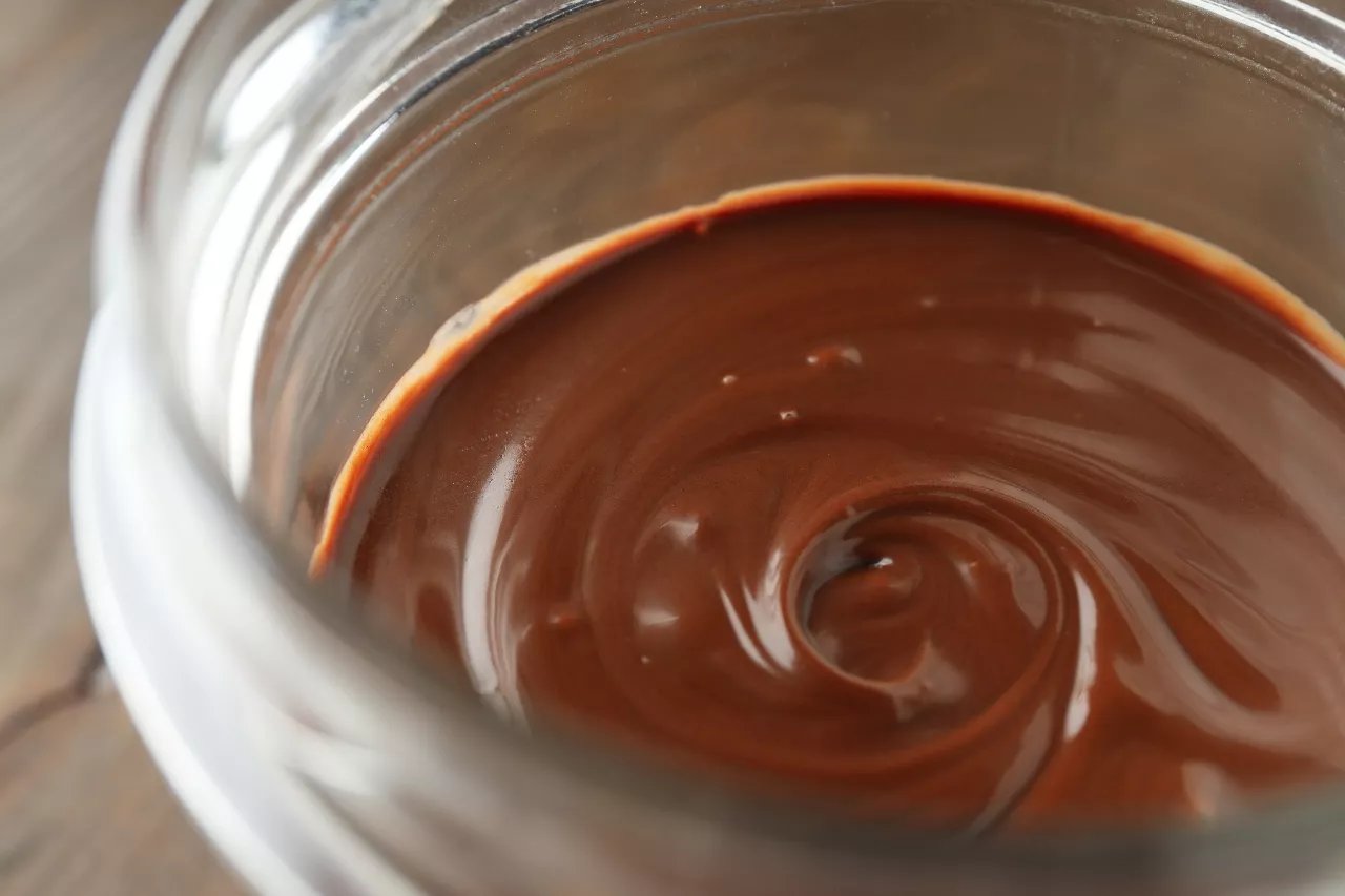 Die Schokolade im Wasserbad schmelzen und kurz abkühlen lassen, damit sie flüssig bleibt, aber nicht zu heiß ist.